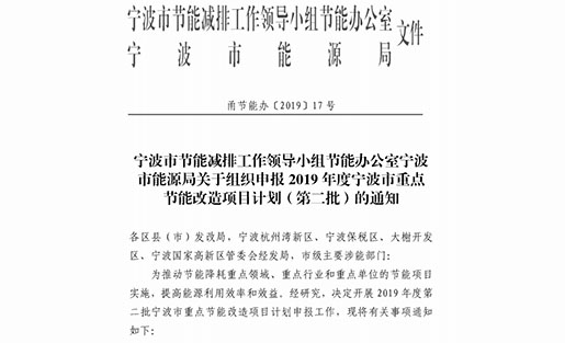 關(guān)于申報(bào)2019年度寧波市重點(diǎn)節(jié)能改造項(xiàng)目計(jì)劃(第二批)的通知