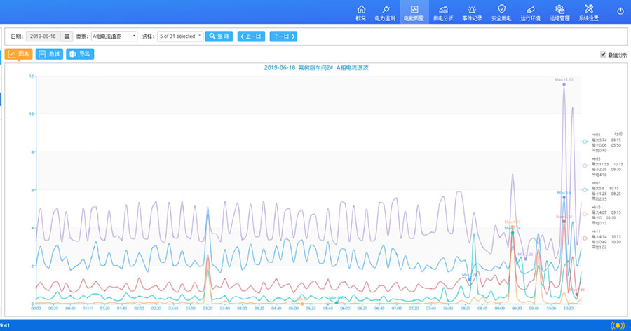 三、電能質量檢測:諧波問題能直接造成用能設備損壞,通過諧波數據提取,幫助企業分析用能質量問題,延長設備使用壽命,同時提高產品合格率。